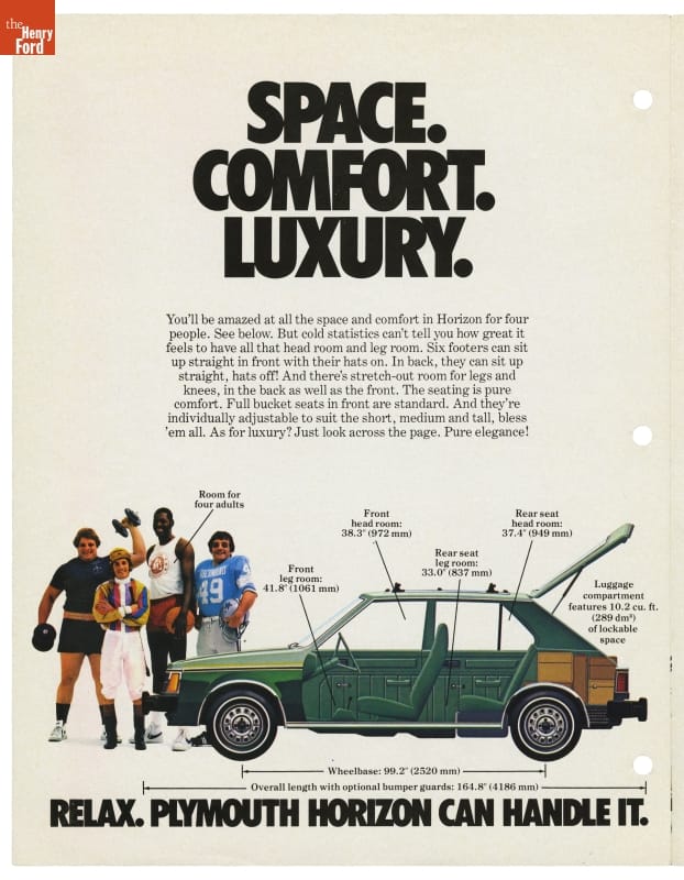 According to this sales brochure, the new horizon for 1978 was a Plymouth Horizon. The car had front-wheel drive, maximized its interior space, and provided needed fuel economy. Plymouth offered luxury options, too. The Horizon and its twin, the Dodge Omni, were Motor Trend's "Car of the Year" for 1978.