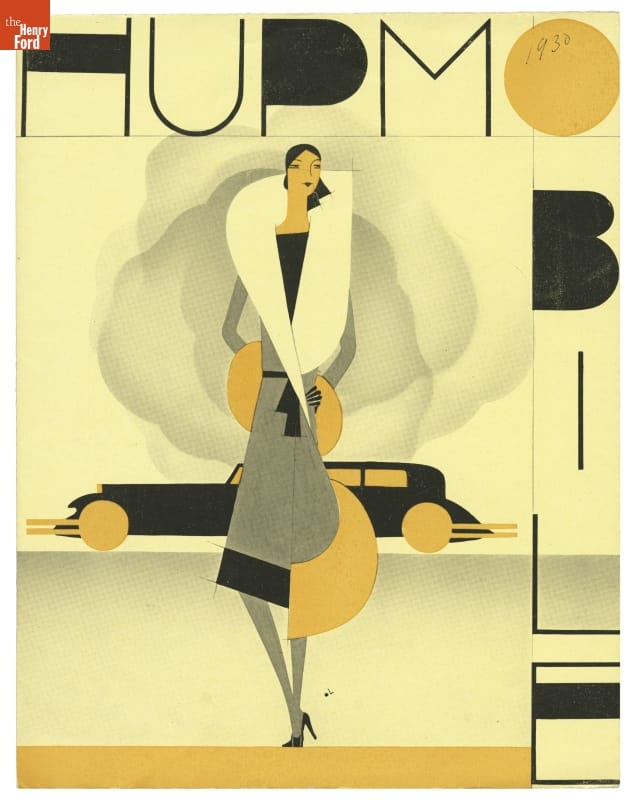 This brochure's Art Deco look projected an up-to-date image for the 1930 Hupmobile DeLuxe Eight. The Hupp Motor Car Corporation highlighted the vehicle's modern detailing -- interior lights, ashtrays, and instrument panel -- alongside traditional mechanical features. Visually, there was nothing stodgy about the 1930 Hupmobile or its sales literature.