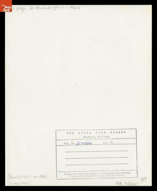 Ink stamp on back of image: The Henry Ford Museum... Neg No. B34260...