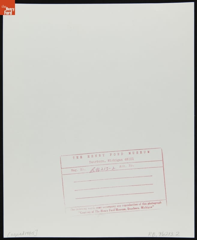 Ink stamp on back of image: The Henry Ford Museum... Neg No. B96213-1...