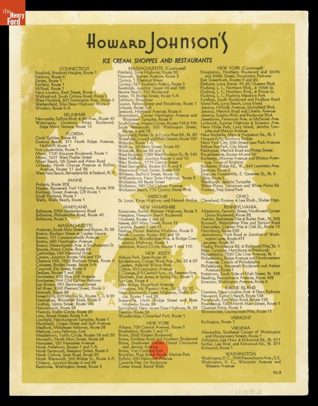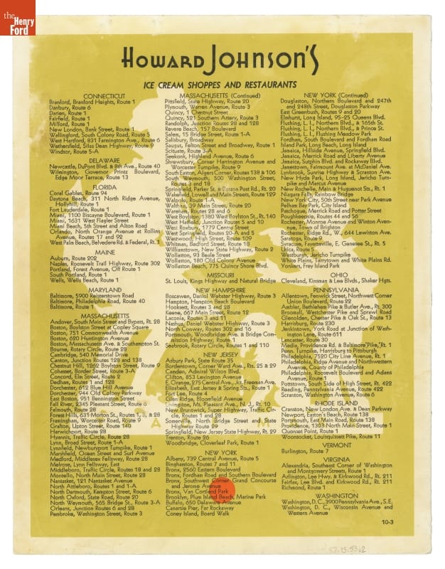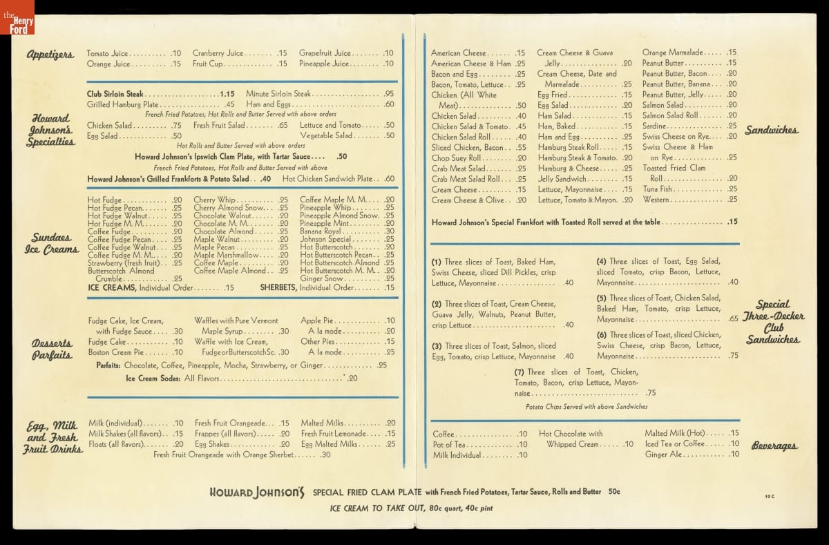 Menu, "Howard Johnson's Delicious Food," circa 1950