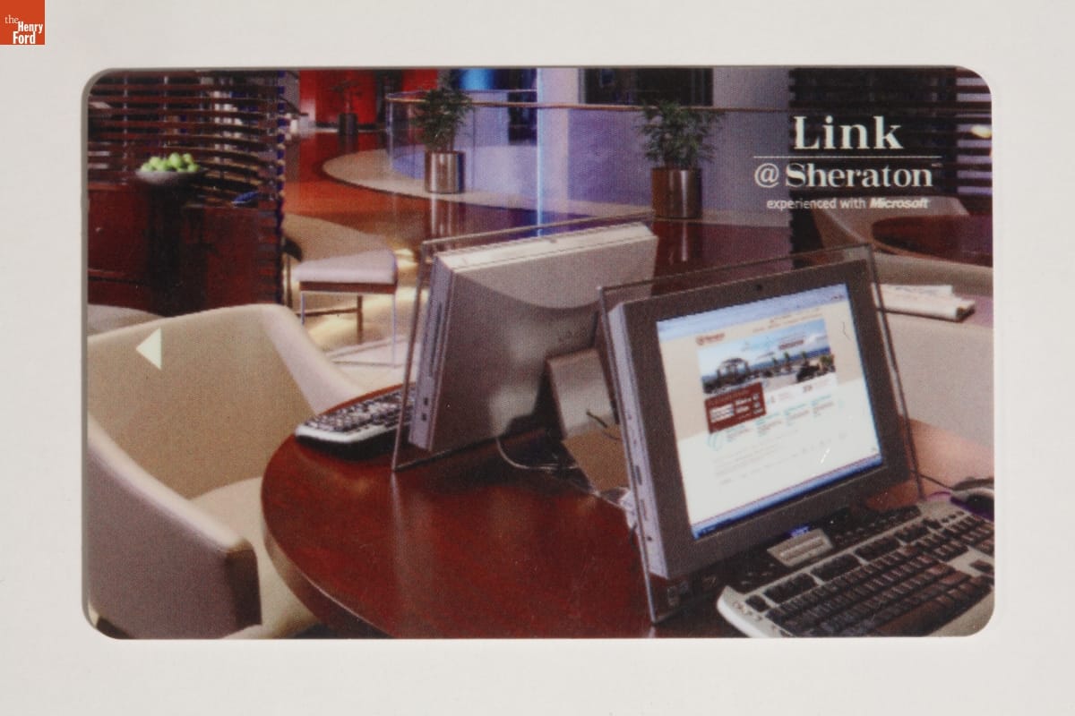 Electronic keycards provide guests with access to their hotel or motel rooms. These programmable credit card-sized plastic keys have replaced traditional metal keys attached to tags. And there is no need to return this key if you accidently walk away with it. Sheraton issued guests keycards like this in the first decade of the 21st century.