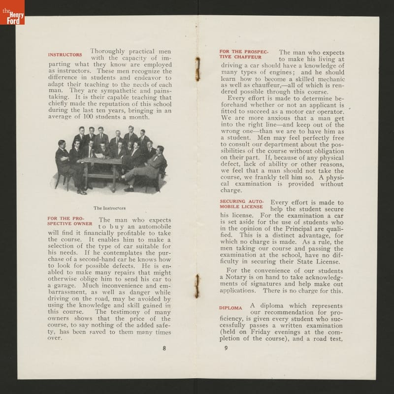 Brochure, "Automobile Instruction," West Side Y.M.C.A., New York, New York, circa 1925