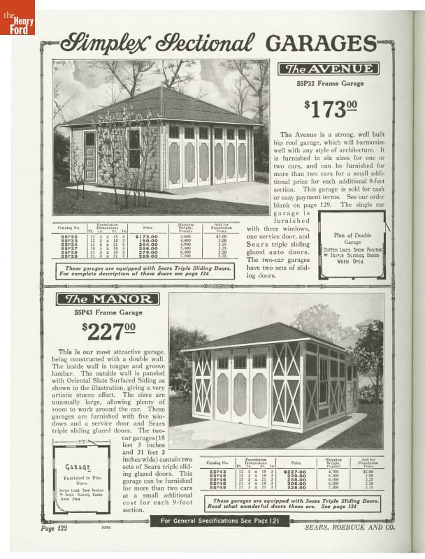 Sears sold houses. This reprint of a 1926 Sears, Roebuck and Company catalog shows floor plans and a complete material list needed to build houses. Or owners could build houses for their automobiles. Sears also offered plans just for garages.