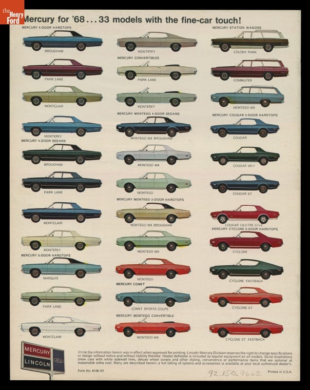 1968 / MERCURY / Thirty-three models / with the fine car touch / ...by the makers of / Lincoln Continental / Mercury - Montego / Cyclone - Cougar