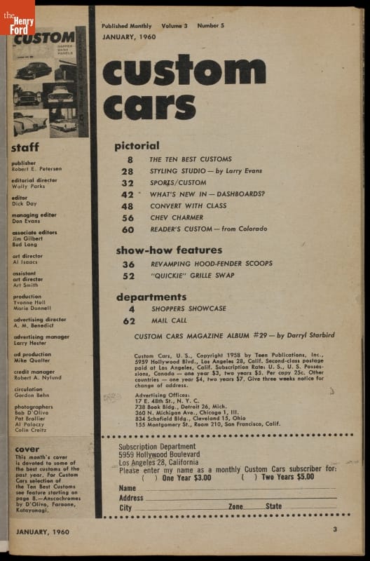 On front cover from top down: CUSTOM / CARS / JANUARY 1960 25c / DAPPER / DASH / PANELS