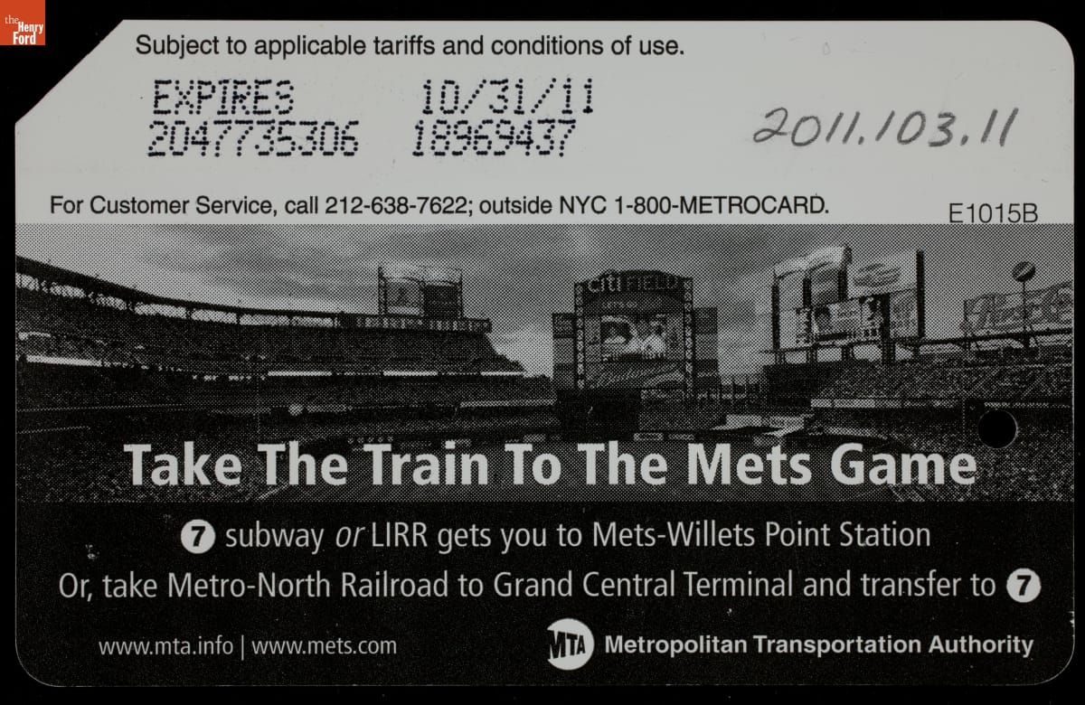 This transit card was good for New York City area subways, buses and ferries. Unlike tokens, cards with magnetic stripes can store a flexible amount of value.