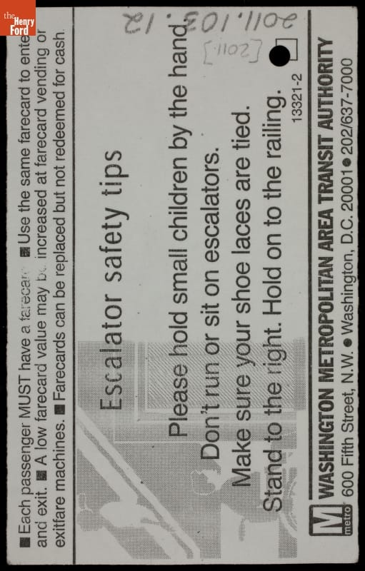 Ticket produced by Washington Metropolitan Area Transit Authority, Washington, D.C.