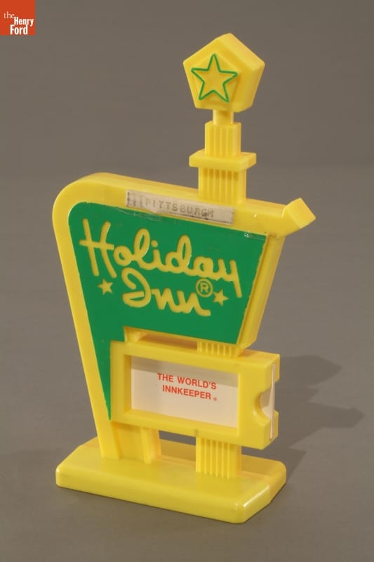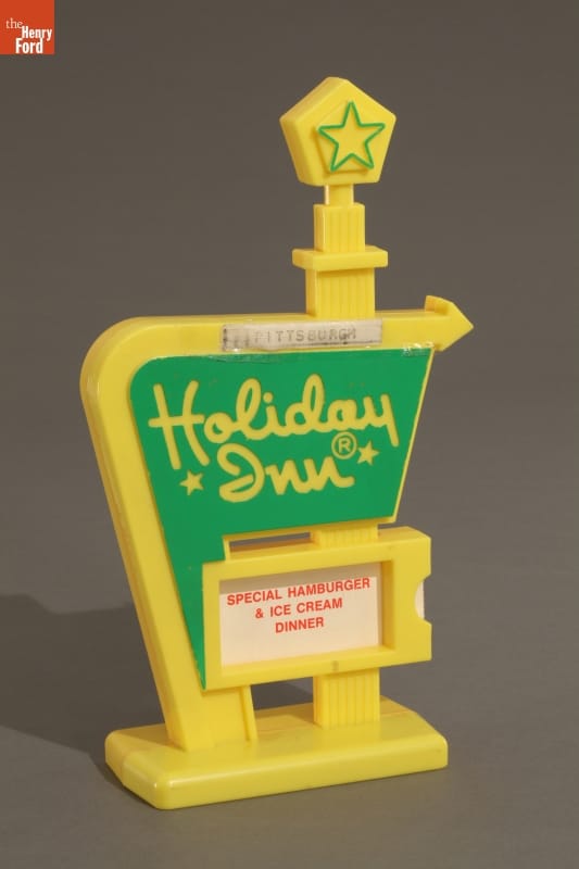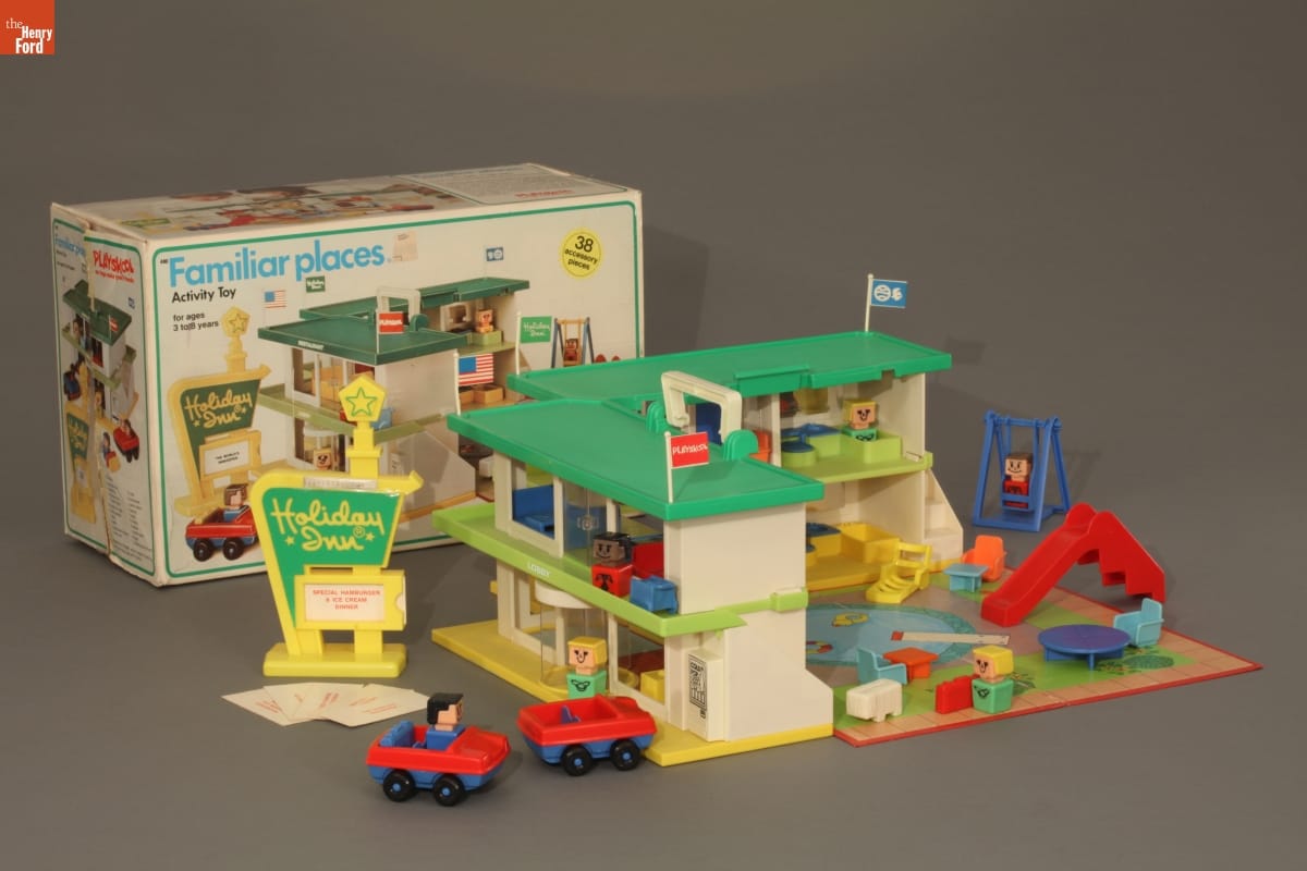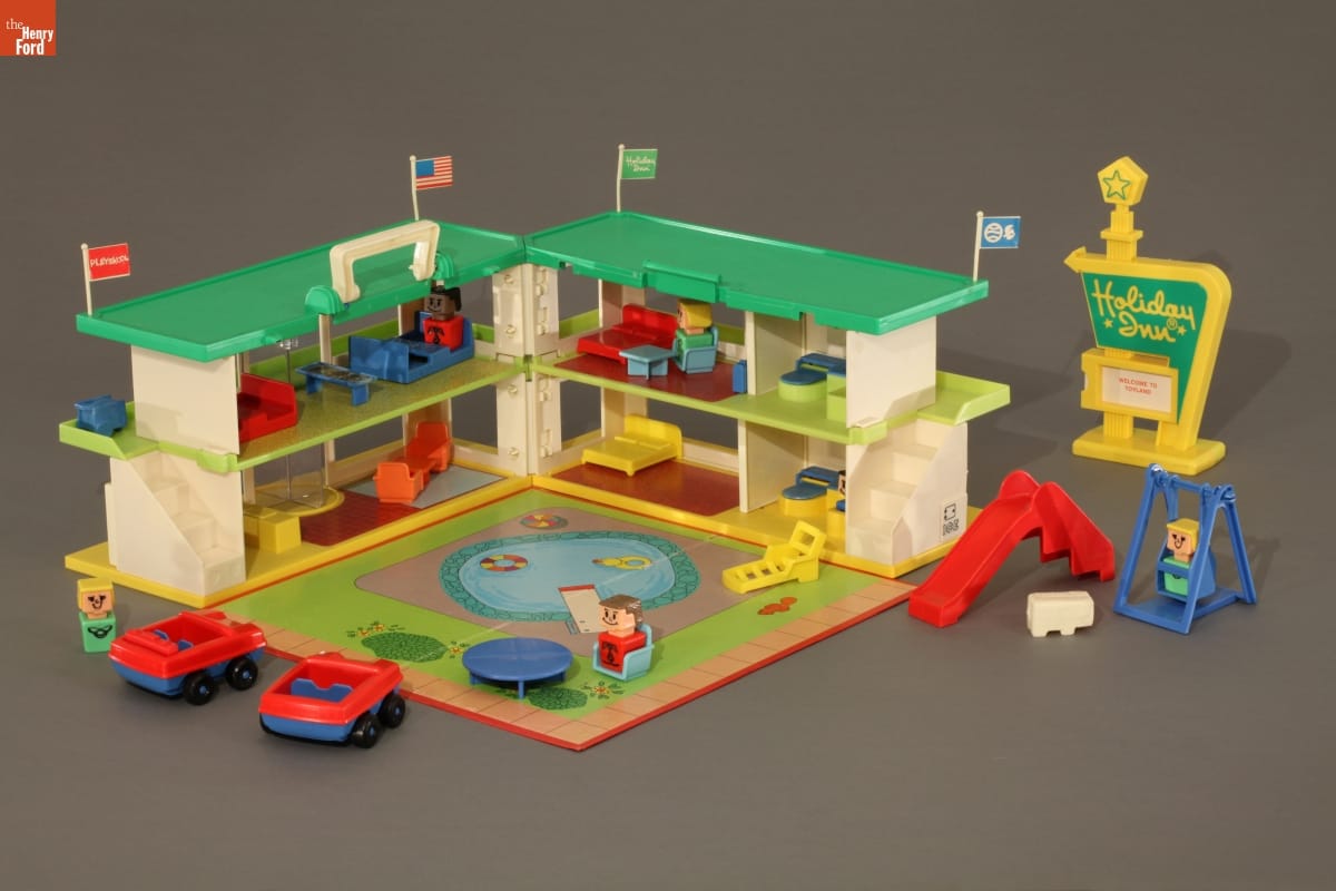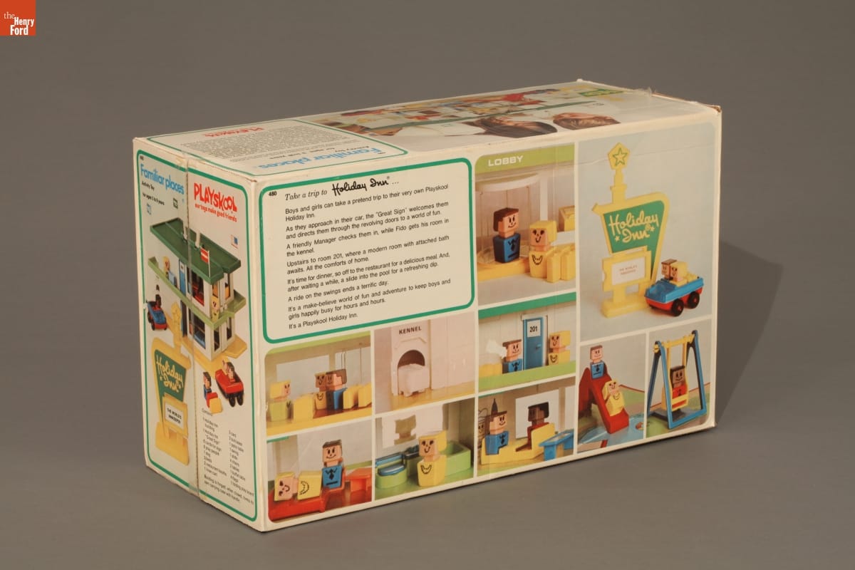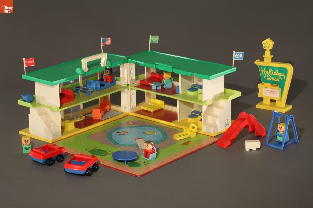 By the 1970s, with more than 1,400 locations worldwide, Holiday Inns were universal. Playskool produced a playset version of the ubiquitous roadside motel for its "Familiar Places" line, complete with an enclosed courtyard and customizable Great Sign -- two iconic features of real-life Holiday Inns.