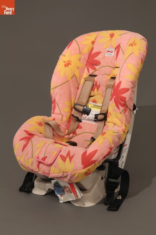 Child passenger safety begins when children are born and continues as they grow. Britax manufactured this seat for a child weighing up to 65 pounds. A child's weight and height influenced the location and installation of the seat within the vehicle. The instruction booklet, stored under the seat cover, provided quick access to proper set up requirements.