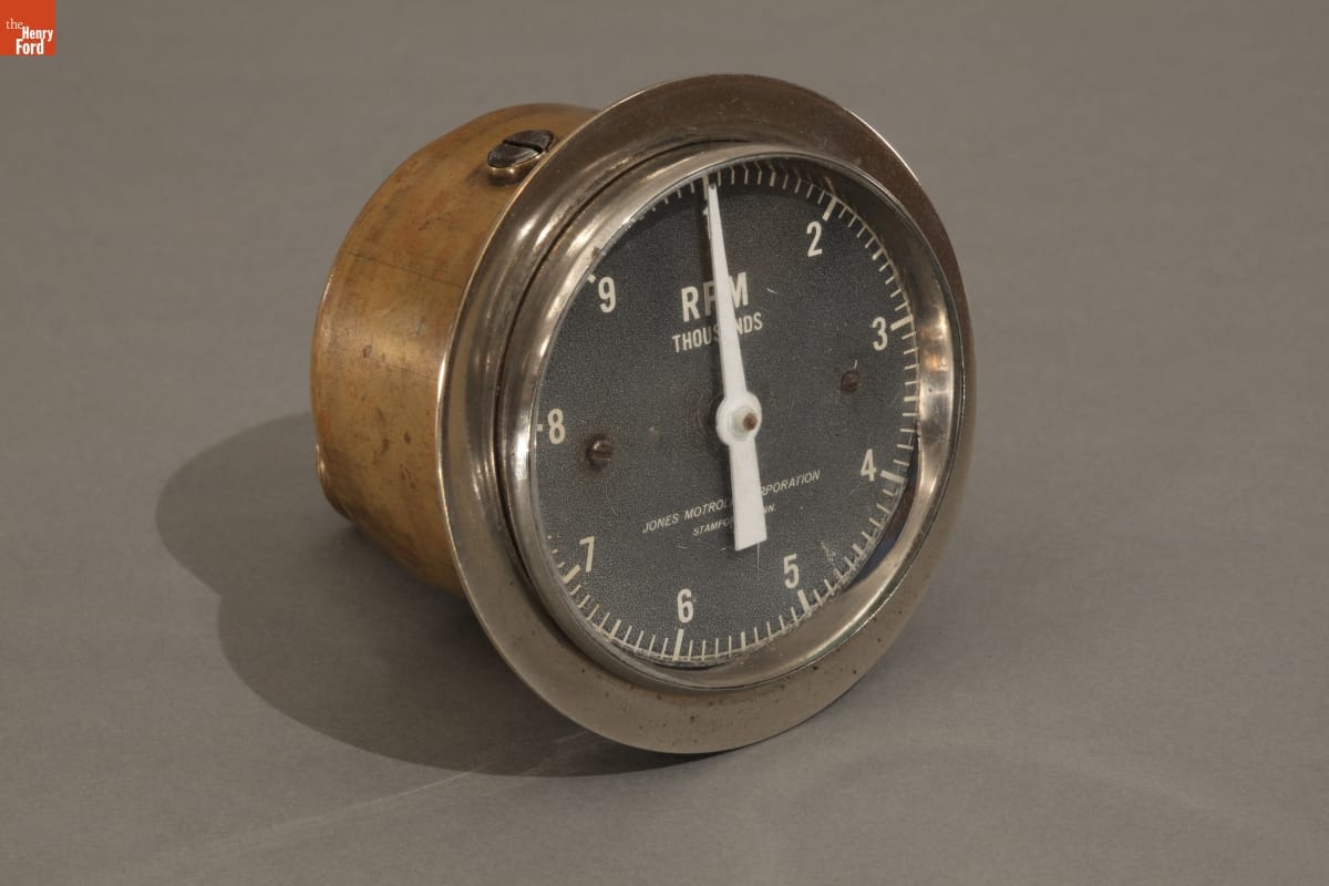 Face: RPM / THOUSANDS / JONES MOTROLA CORPORATION / STAMFORD, CONN. Decal on side: JONES MOTROLA CORPORATION / STAMFORD, CONN., U.S.A. 06904 / RATIO 1 - 2 / CODE GE (illeg) / TYPE 1081