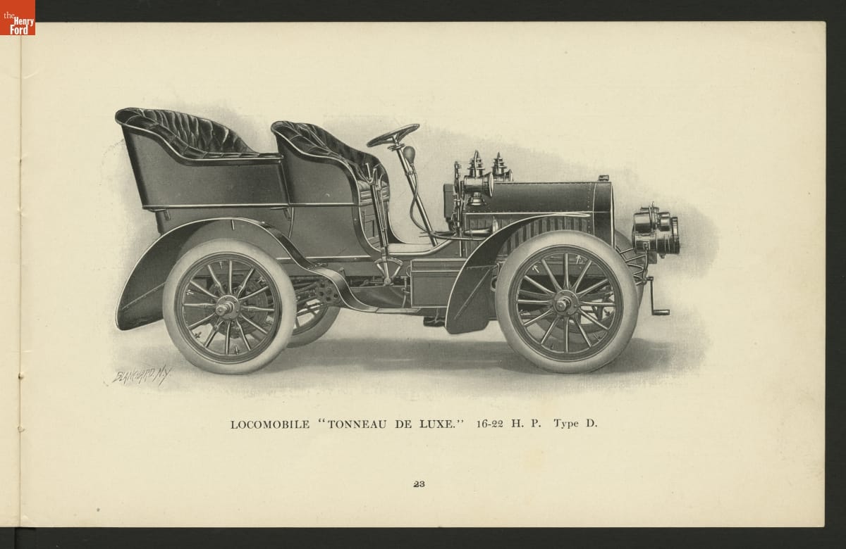 Locomobile promoted its "gasolene" touring cars in this 1904 sales catalog. The company began in 1899 by building steam-powered cars. And Andrew L. Riker, who designed this Locomobile, was known for creating electric-powered vehicles. This catalog provided buyers with the information and assurances of the Locomobile's quality.