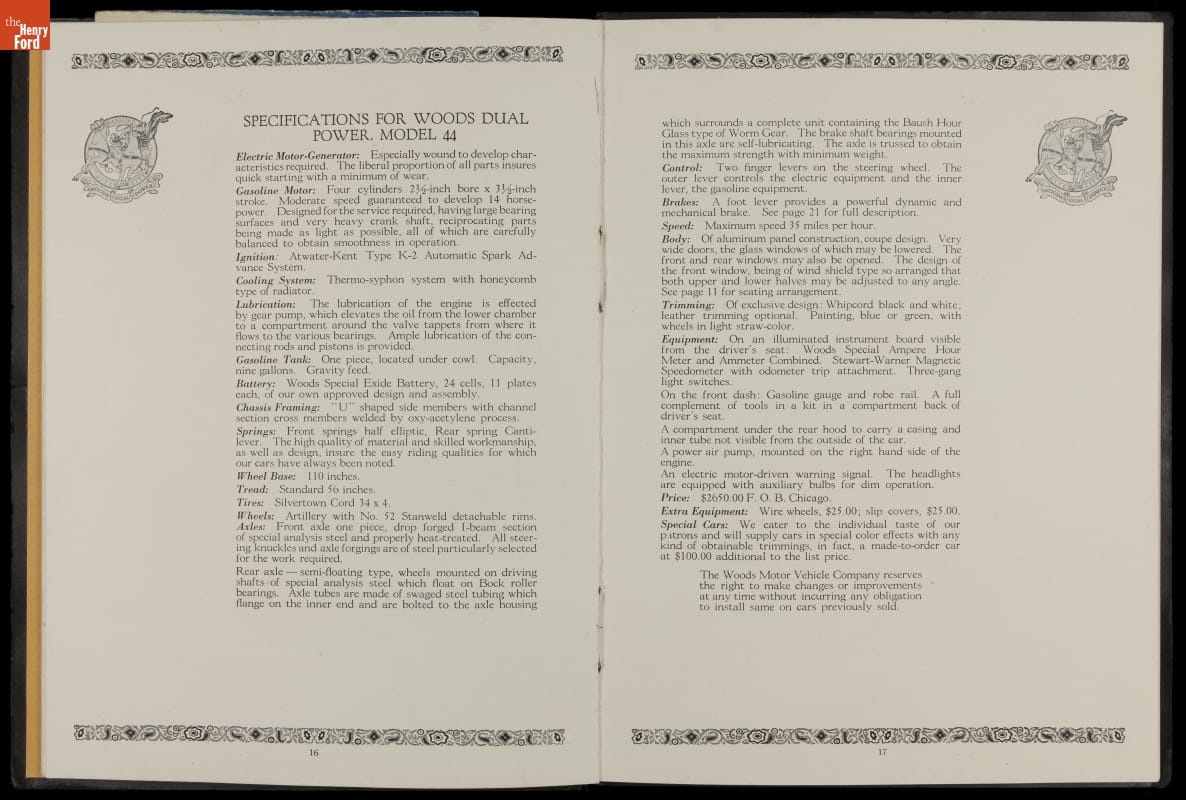 This 1916 catalog showcases the Woods Dual-Power automobile. Batteries and gasoline powered the vehicle. The Woods Motor Vehicle Company hoped to draw in buyers with the best of both power sources. It didn't work. The company failed a few years later.