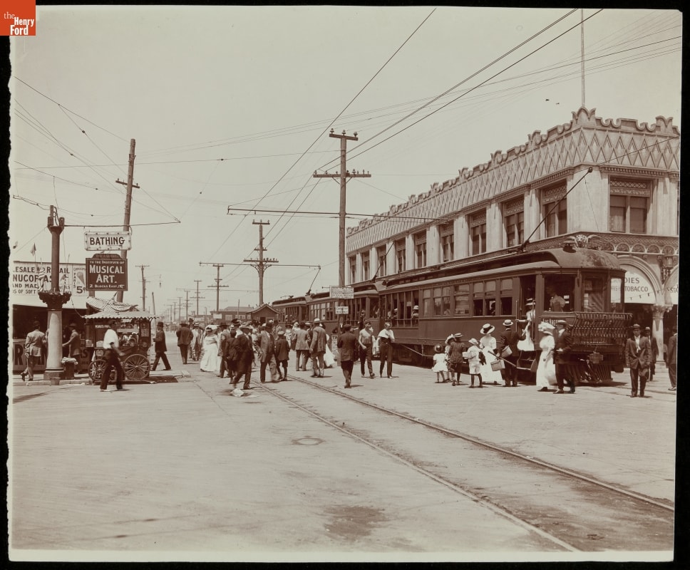 Starting in the late 1800s, streetcars were the circulatory system of American cities. They were cheap, convenient and went where riders needed to go. Passengers took streetcars to city leisure destinations like Los Angeles's Venice Beach, seen here in 1910.