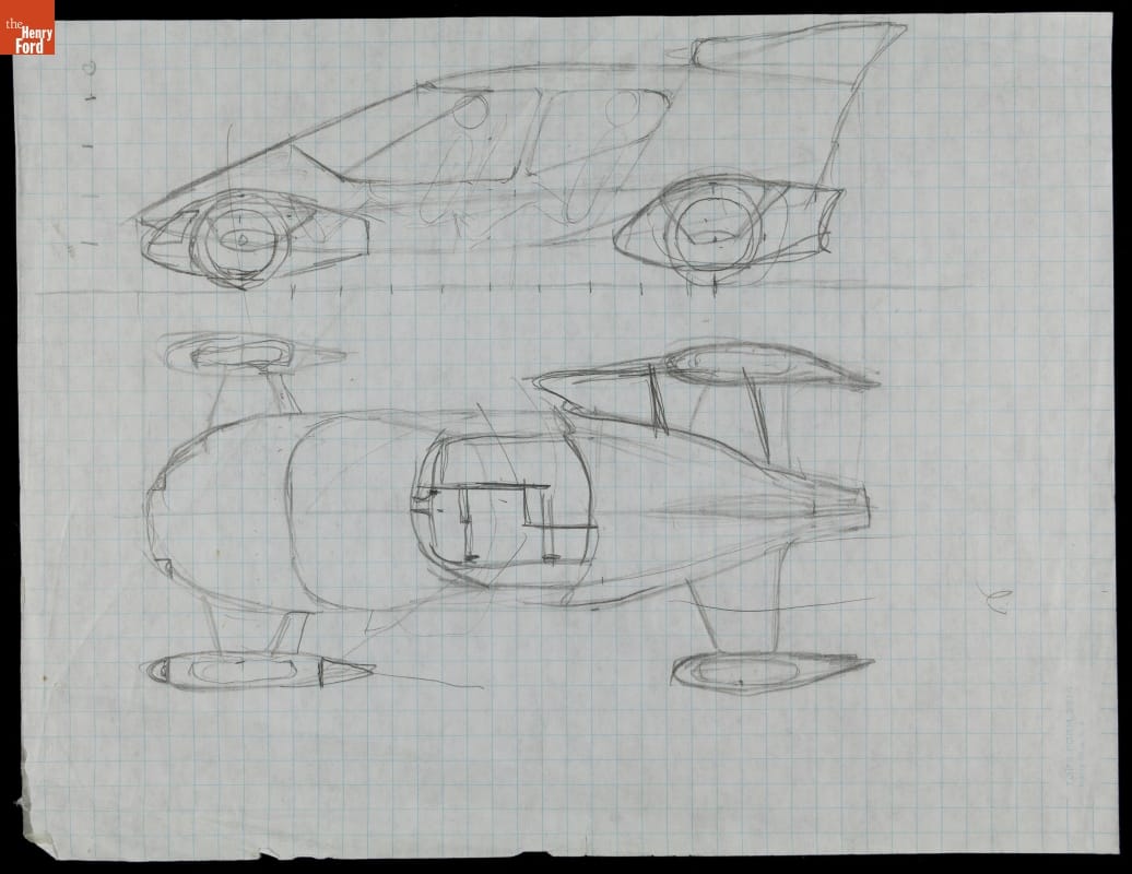 This sketch of the Edison2 was drawn freehand in a coffee shop; it might appear hasty, but its creator is an aerodynamics engineer -- an expert in stealth aircraft technology with decades of wind tunnel experience. While the next steps involved computer-aided design, rough explorations like this were crucial to the development -- and final shape -- of the Edison2.