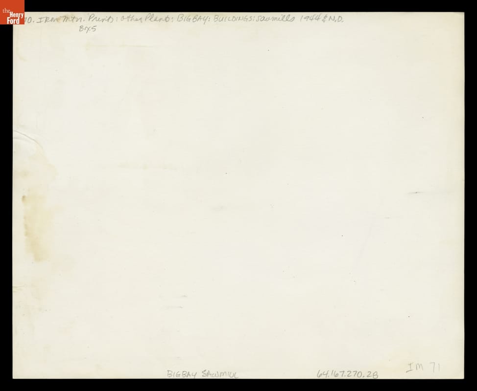 In pursuit of self-sufficient automobile manufacture, Henry Ford and Ford Motor Company purchased over 313,000 acres of timberland for logging in the Upper Peninsula of Michigan. Ford established remote milling sites in several places, but Big Bay was unique. In 1943, Henry Ford purchased not only the sawmill and power plant, but nearly every other building in town.