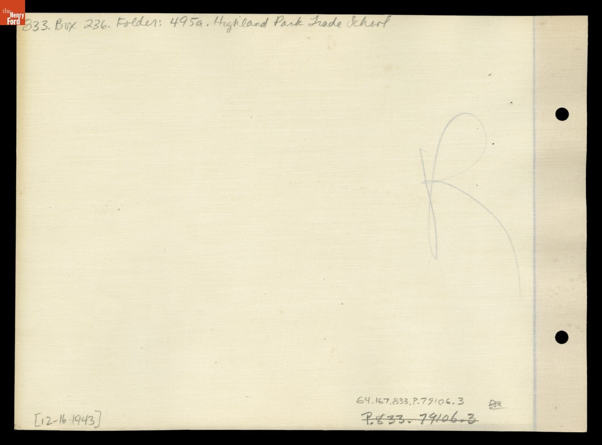 Henry Ford was an educational pioneer. He believed that practical skills should be taught alongside academics. In 1916, he established a trade school adjacent to the Highland Park Ford Plant. Students alternated between traditional class work and shop practice. During World War II, the school served as a training center where skilled tradesmen prepared military machinists and female factory workers.