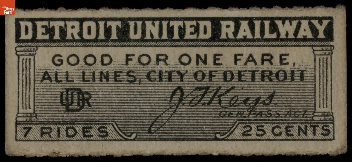 Streetcars were a convenient, practical and affordable way to get around cities. A passenger used this ticket to ride streetcar lines operated by Detroit United Railways in Detroit and throughout southeast Michigan.