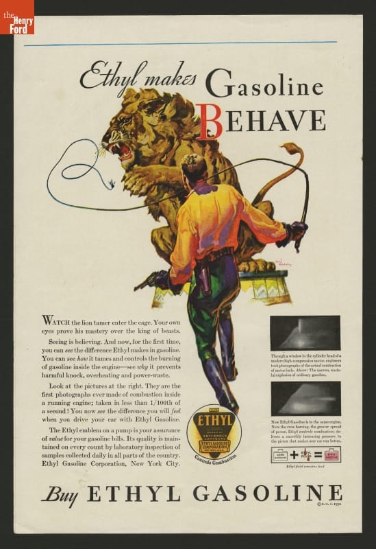 Ethyl Gasoline Corporation Ad, "Ethyl Makes Gasoline Behave," 1932