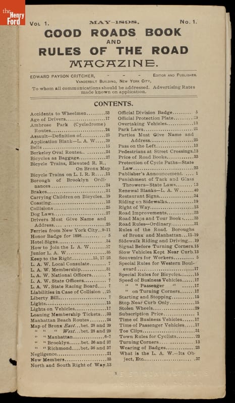The League of American Wheelmen's New York State Division created this publication that championed the rights of bicyclists. This quarterly publication promoted good roads and encouraged proper bicycle etiquette.