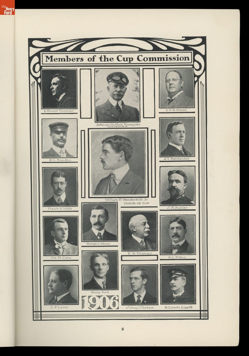 The Vanderbilt Cup, held on New York's Long Island from 1904 to 1910, was America's first internationally prominent automobile race. William K. Vanderbilt, Jr., a wealthy railroad heir, organized the competition over public roads. European cars dominated the event's first years. This program is from the 1906 race, won by French driver Louis Wagner in a French-built Darracq.