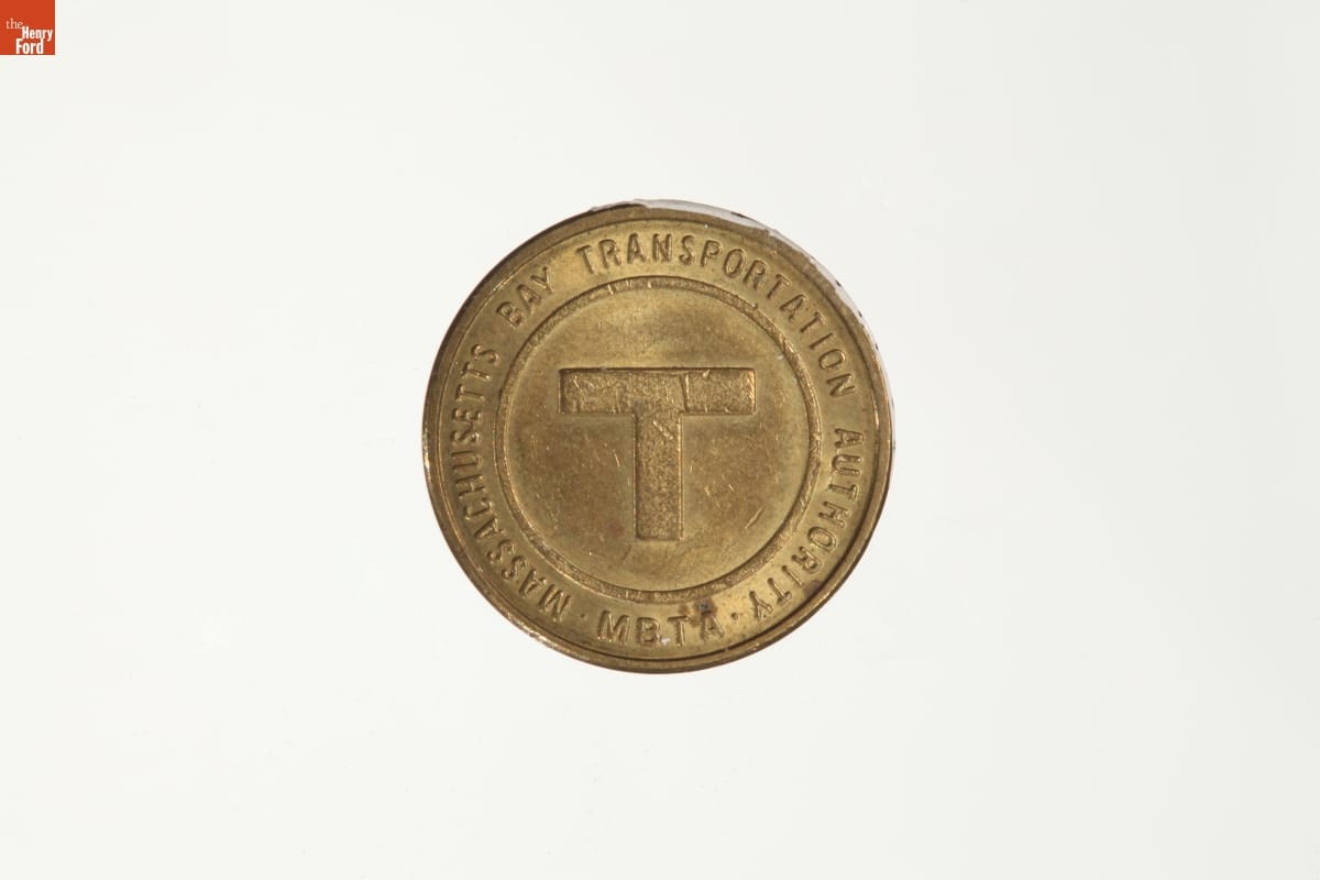 This token token let passengers ride the Boston area subway system, operated by the Massachusetts Bay Transportation Authority, in the late 1990s.
