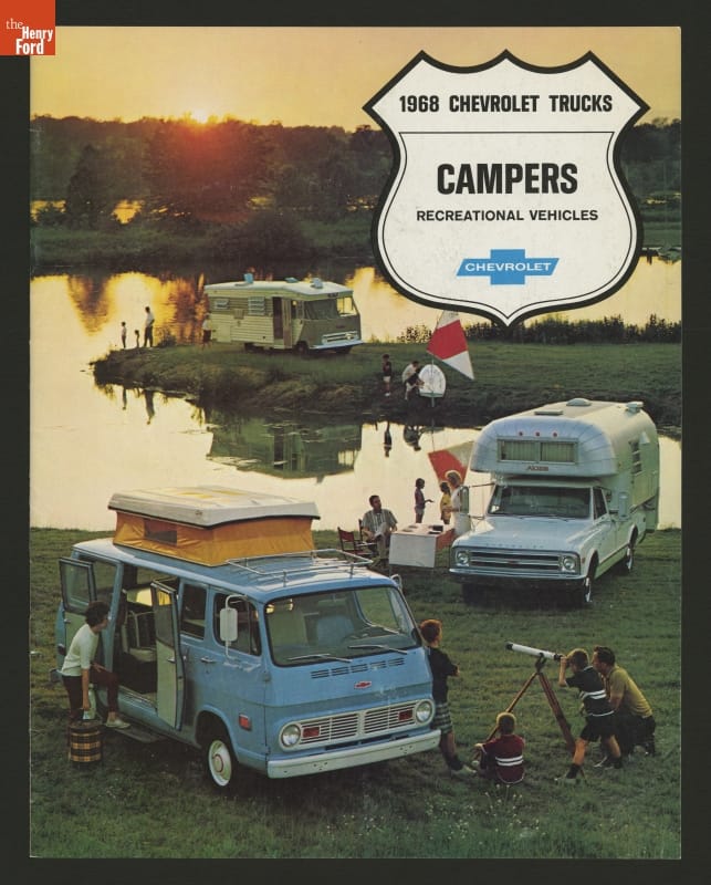 Auto manufacturers embraced the market potential of campers and motorhomes in the 1960s, creating their own versions. This 1968 Chevrolet recreational vehicle catalog provided potential buyers with needed information and a variety of available choices.