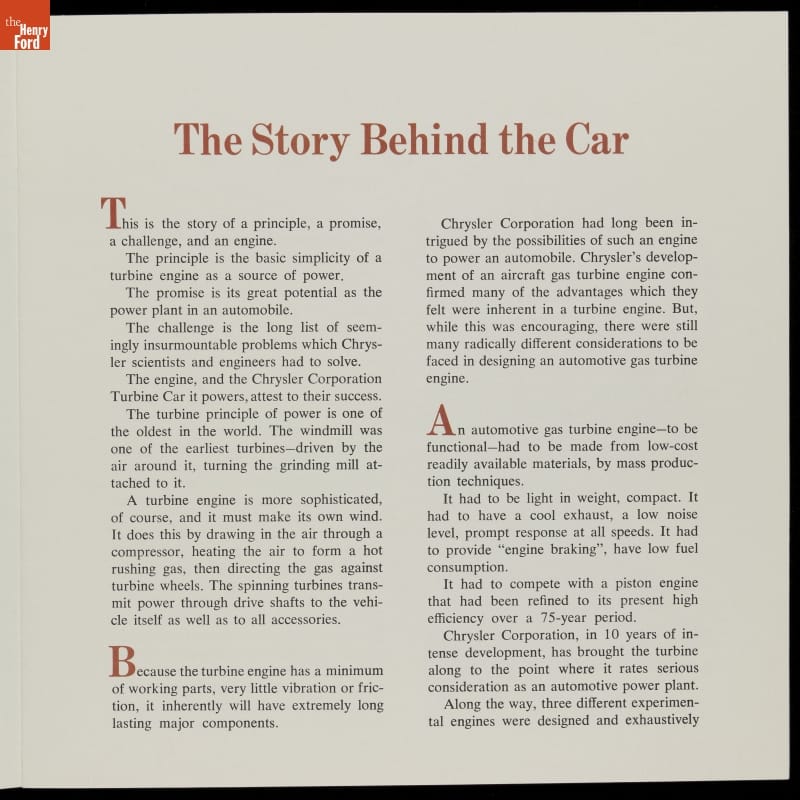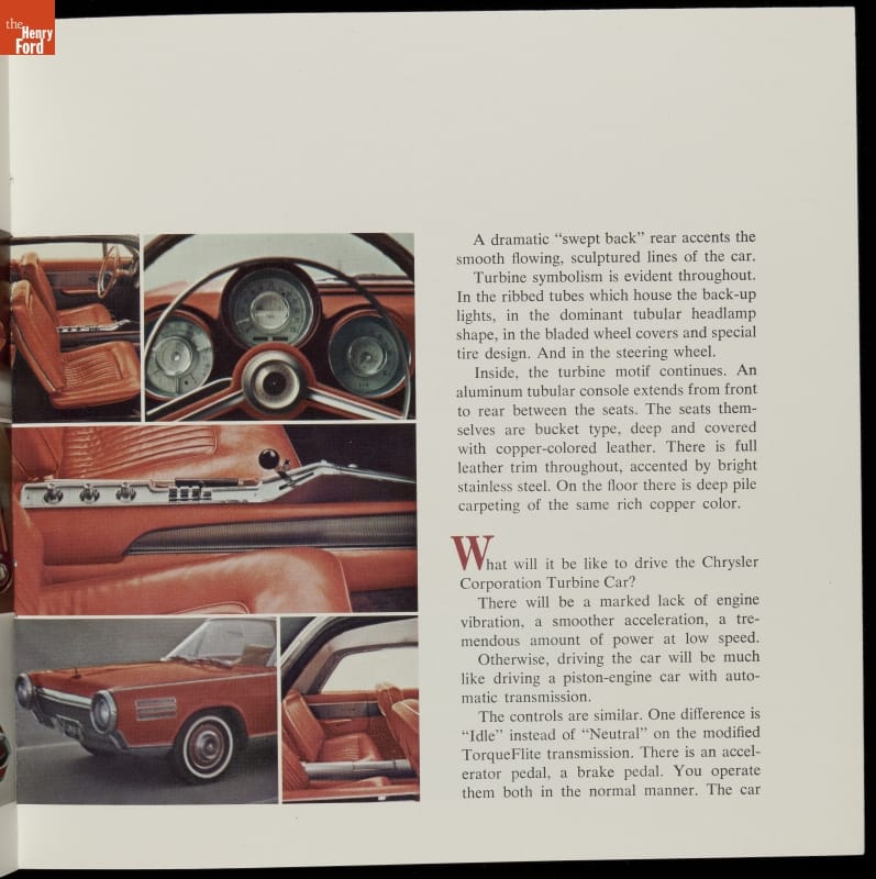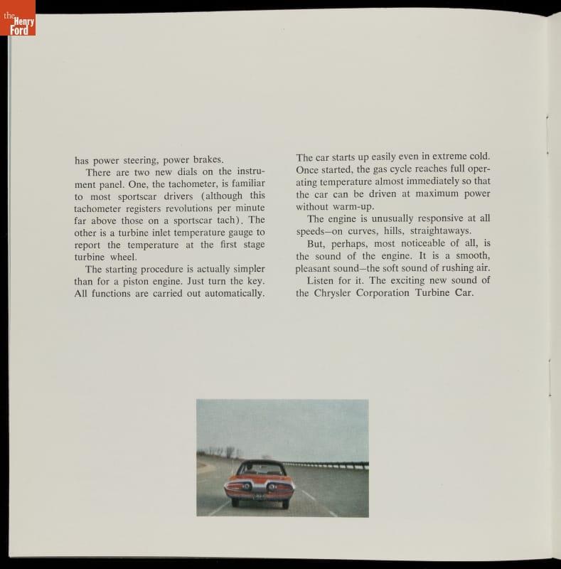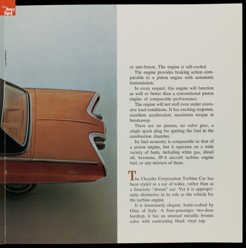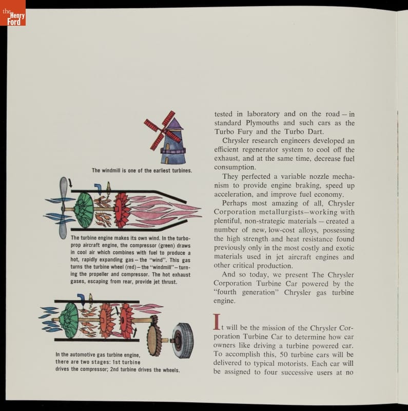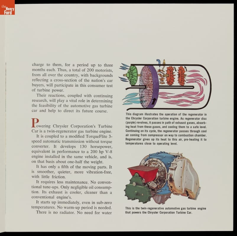 Chrysler's experiments with gas turbine automobiles hit a peak in 1963 when the company lent 50 operating prototypes to the public to gain real-world feedback. With no reciprocating parts, the turbine engine was far smoother than a piston engine. It could run on anything from kerosene to perfume. But the car's fuel mileage -- around 11 miles per gallon -- was underwhelming.