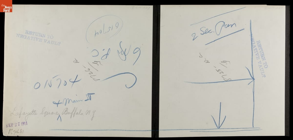 For nearly thirty years, 1895 to 1924, the Detroit Publishing Company was one of the major image publishers in the world. The company had a wide-ranging stock of original photographs, including this image of Buffalo, New York. At the center of Lafayette Square is the Soldiers and Sailors Monument, an 85-foot column honoring veterans of the Civil War.