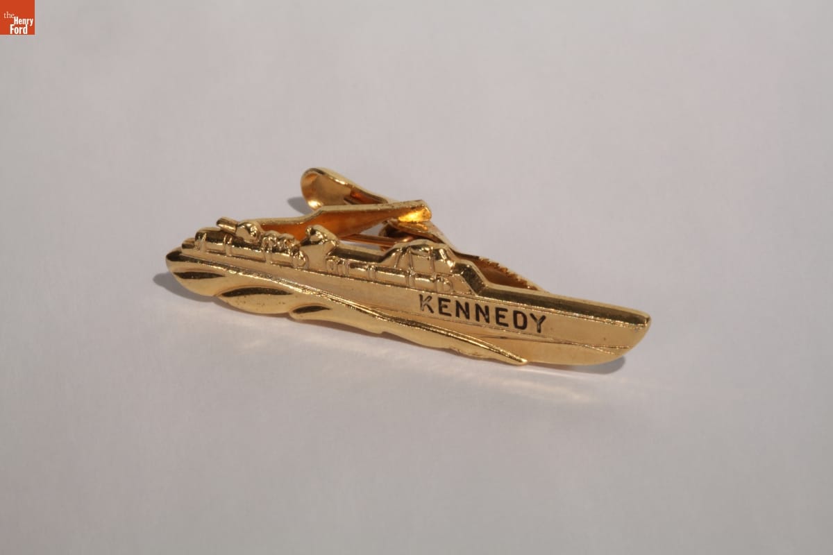 This tie clasp - originally distributed in support of John F. Kennedy's 1960 presidential campaign - was gifted to United States Secret Service agent Morgan L. Gies. Agent Gies served five presidents, from 1941 until 1967. During Kennedy's presidency, he was responsible for White House vehicles.