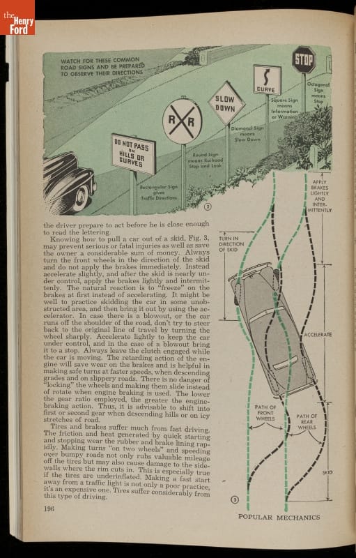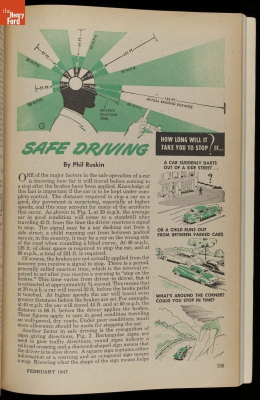 Popular Mechanics, first published in 1902, has made information about technology and science understandable to the general public. In this February 1947 issue, the editors provided answers to how long it would take to stop a car and other vehicle safety questions.