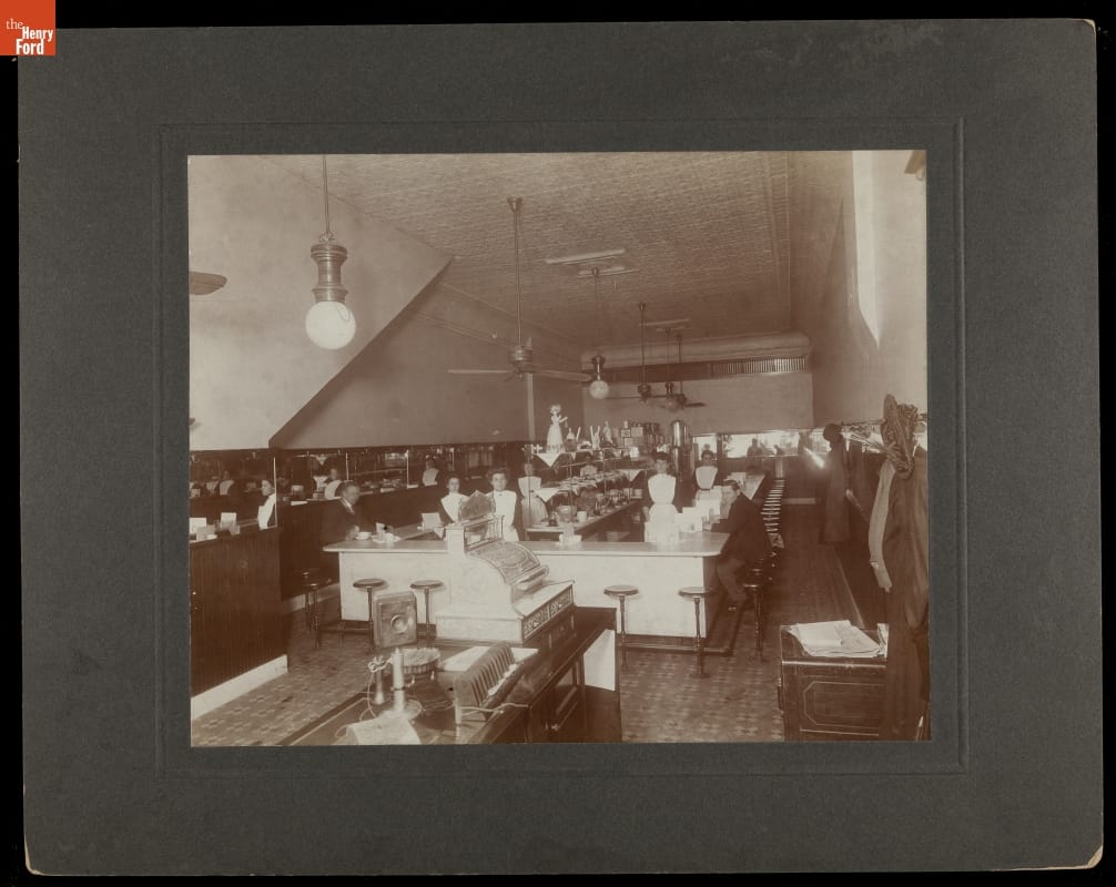 Interior of Boerth's Quick Lunch Restaurant, Detroit, Michigan, circa 1905