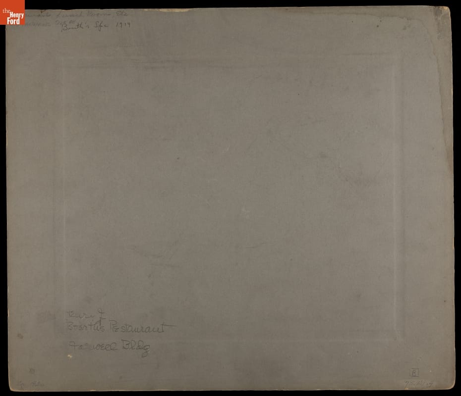 Baker Henry J. Boerth and his family opened their first restaurant on Woodward Avenue in 1894. By 1919, Boerth's Lunch Company owned and operated four restaurants in Detroit, although the company was out of business by 1923. This is the interior of one of Boerth's Restaurants in about 1920.