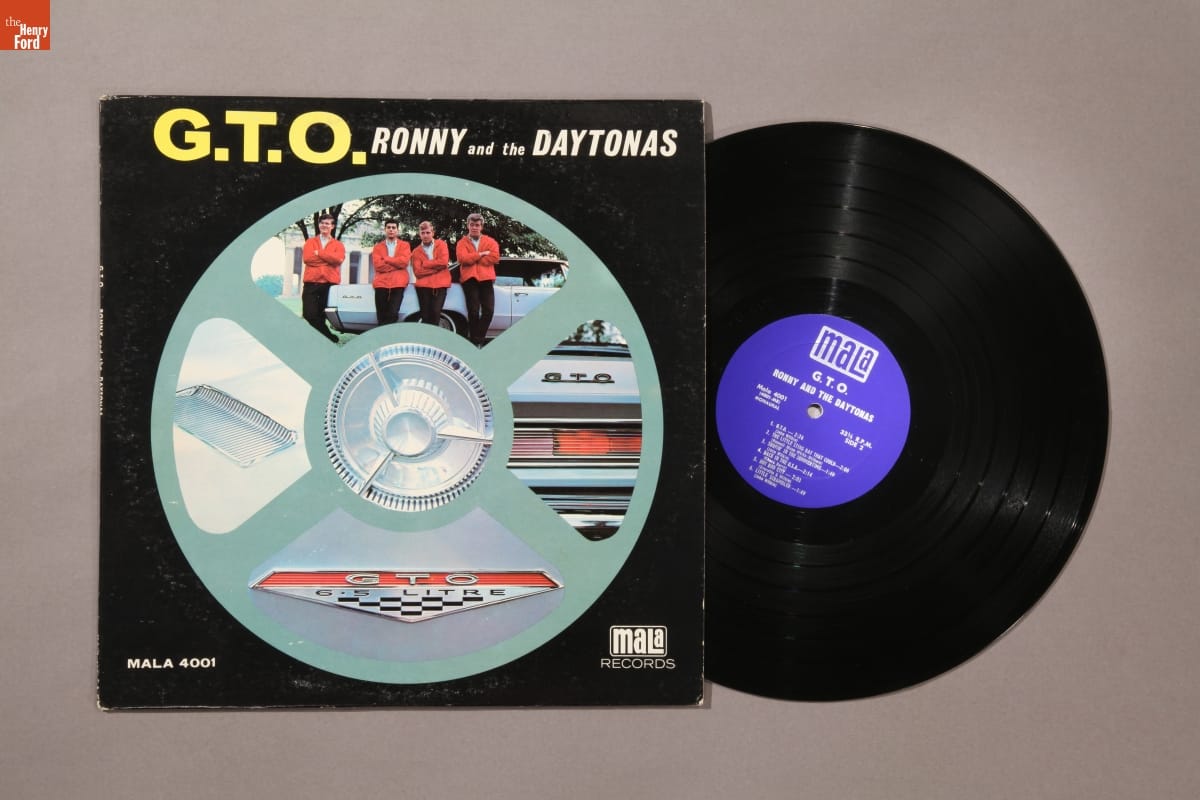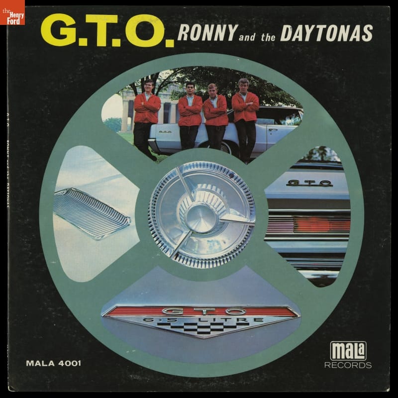Printed front cover: G.T.O. / RONNY and the DAYTONAS / MALA 4001 / MALA RECORDS Printed lower right verso: Produced by Bill Justis / Cover Design by Win Bruder