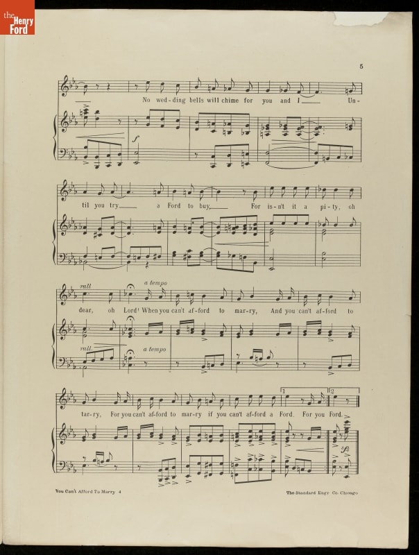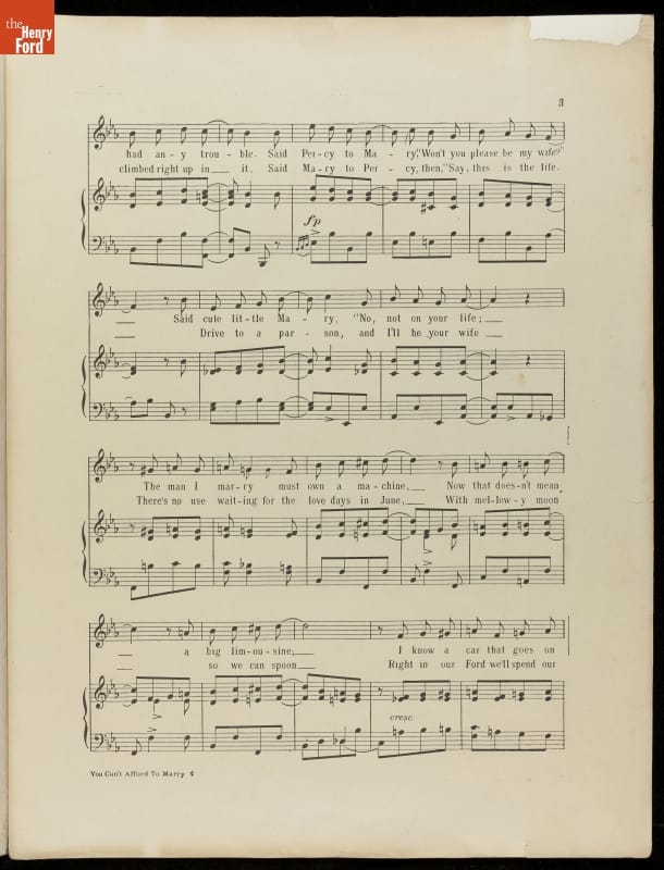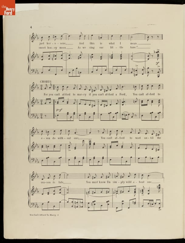 Music Sheet, "You Can't Afford to Marry, If You Can't Afford a Ford," 1915
