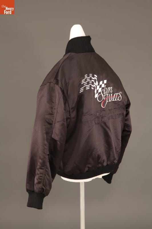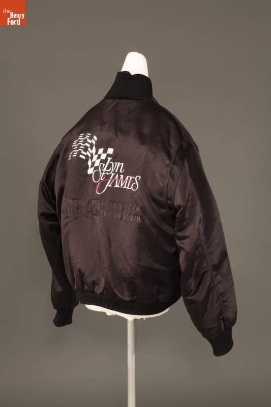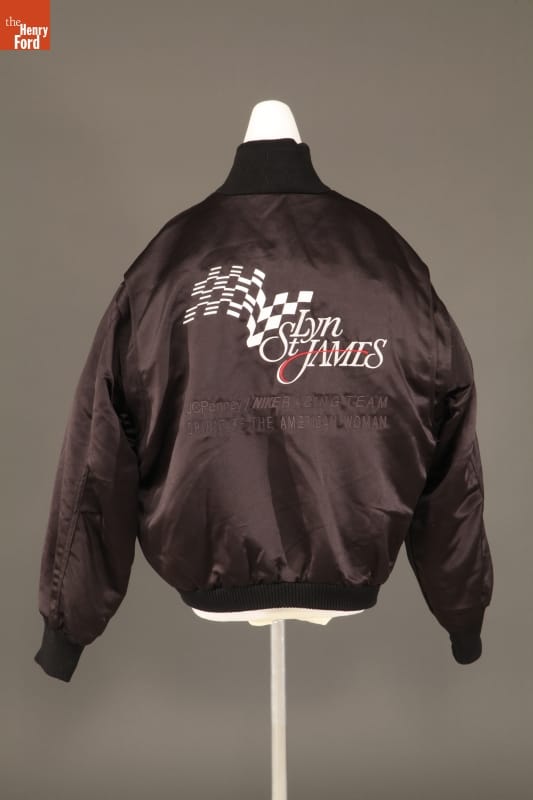 Lyn St. James has competed at top professional races worldwide. In 1992, driving a Cosworth-powered Lola known as "The Spirit of the American Woman," St. James became the first woman to win the Indianapolis 500 Rookie of the Year award. Over the next few years, corporate sponsors promoted the car and driver with various advertising items, like this jacket.