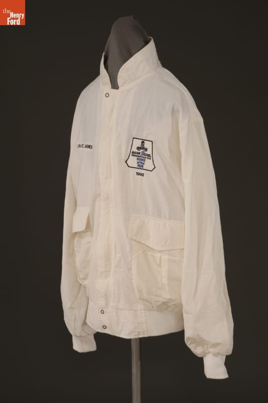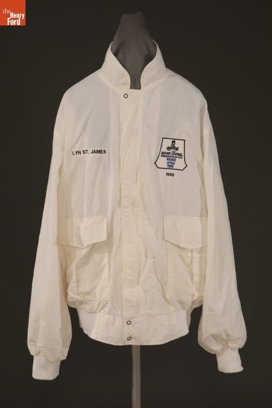 Lyn St. James's drive and determination led to a successful racing career. St. James has competed in top professional races worldwide since the mid-1970s. She established the Complete Driver Academy in 1994, where she continues to inspire and train future female race car drivers. This jacket commemorates St. James's 1992 Indianapolis 500 Rookie of the Year achievement.