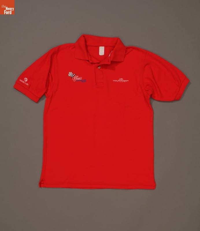 Lyn St. James's drive and determination led to a successful racing career. St. James has competed in top professional races worldwide since the mid-1970s. She established the Complete Driver Academy in 1994, where she continues to inspire and train future female race car drivers. This shirt sports a Mercury logo. Ford Motor Company sponsored St. James throughout the 1980s.