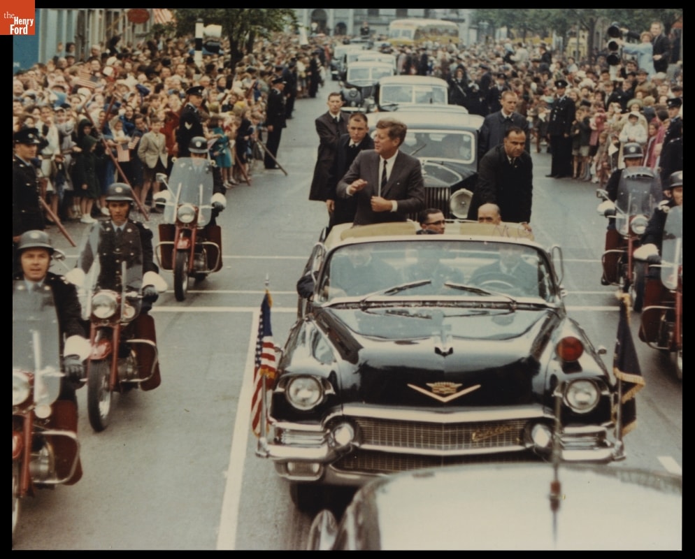 President John F. Kennedy Riding in the 1956 Cadillac Presidential Limousine in Cork, Ireland, June 28, 1963