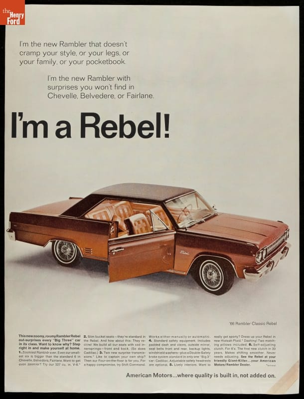 "I'm a Rebel!" Advertisement for a Rebel Automobile, 1966