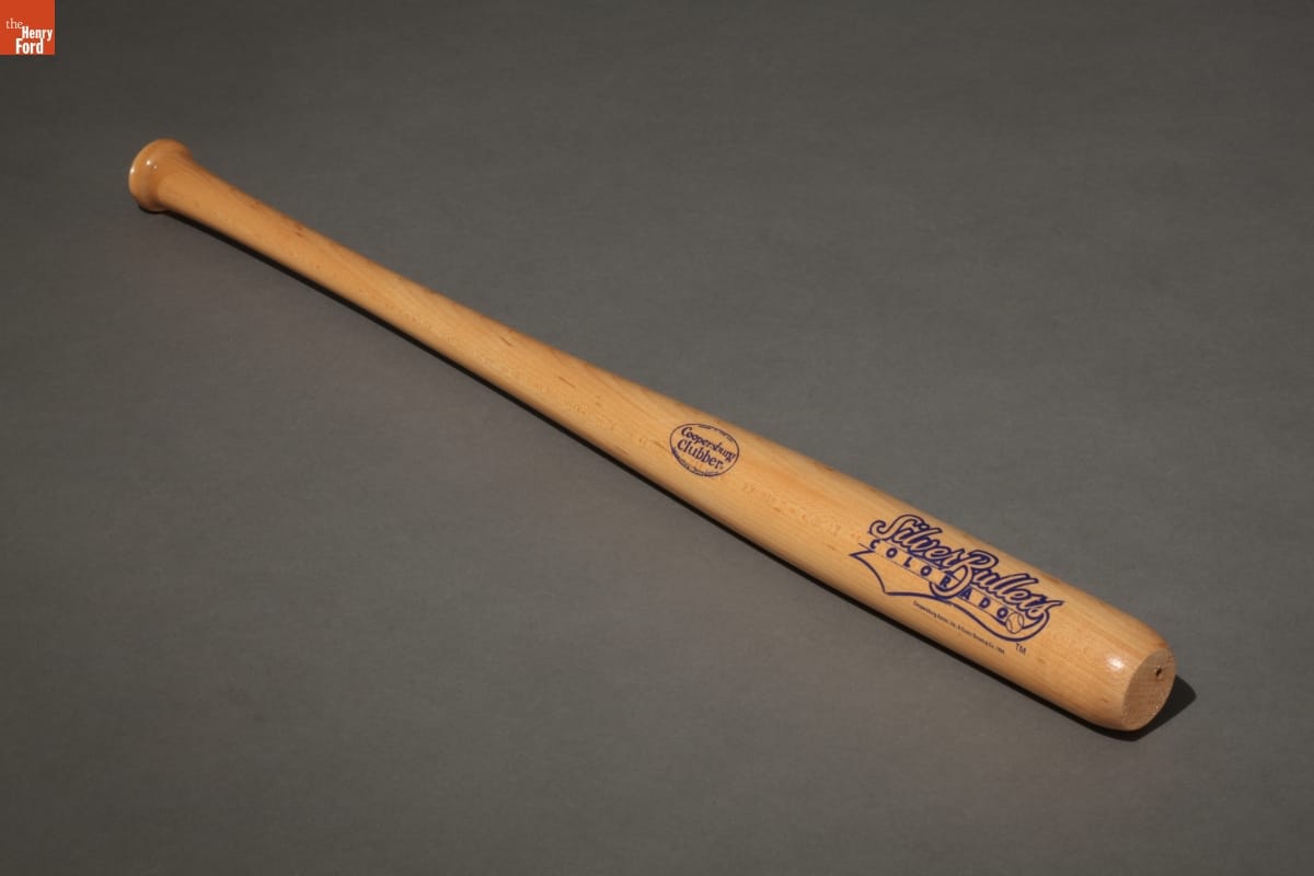 The Colorado Silver Bullets was the first all-female professional baseball team organized after the All-American Girls Professional League folded in 1954. The team played for four seasons (1994-1997) against men's minor league, semi-professional, and college teams. The team organization produced souvenirs, like this miniature baseball bat with the Silver Bullets' logo.