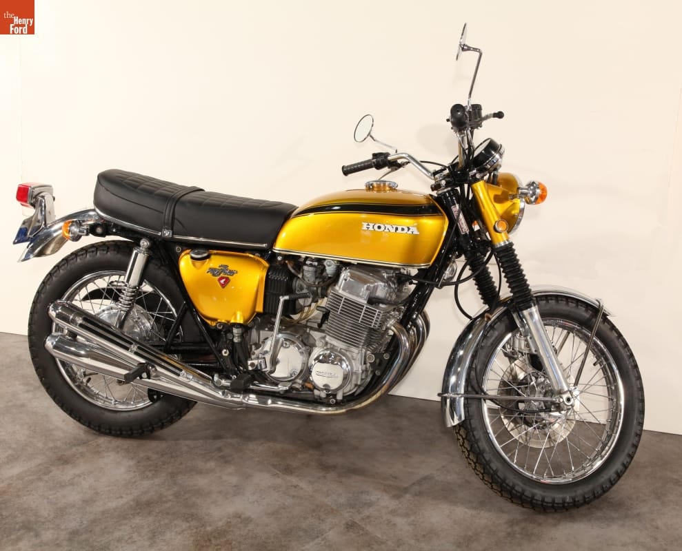 Honda introduced the CB750 in 1969. This motorcycle was fast, smooth, and reliable. Honda packaged a powerful four-cylinder engine, five-speed gearbox, electric starter, and front disc brake -- something new to the motorcycle world -- into a lightweight and reasonably priced vehicle. The CB750 is sometimes called the first modern motorcycle.