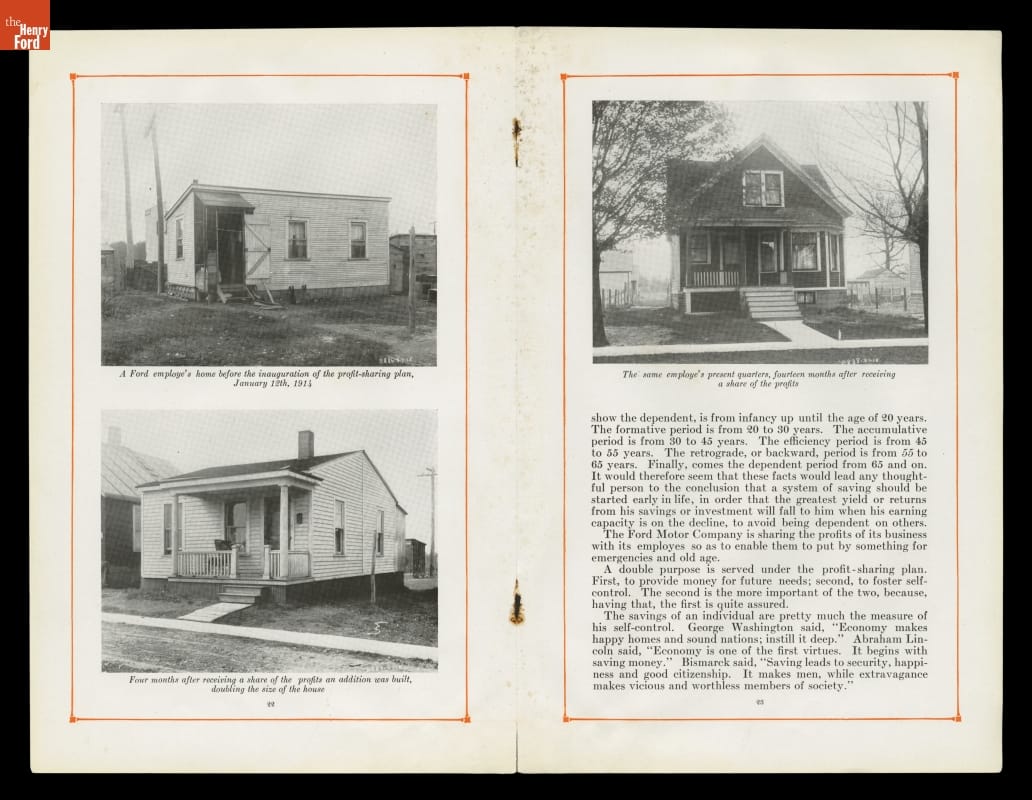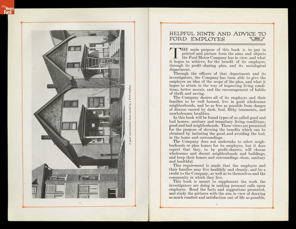 Part of Henry Ford's attempt to Americanize immigrant workers, this book describes the code of good conduct that Ford expected of his workers and their families -- including suggestions for appropriate housing. In fact, as soon as white auto workers could afford it, they happily purchased one of the new bungalows located away from the noisy, grimy factory.