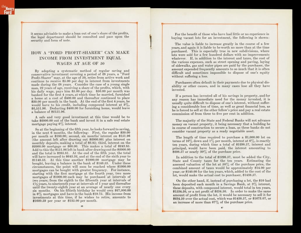 Second title inside front cover: TO HELP THEM GRASP / THE OPPORTUNITIES / WHICH ARE PRESENTED / TO THEM BY THE FORD / PROFIT-SHARING PLAN