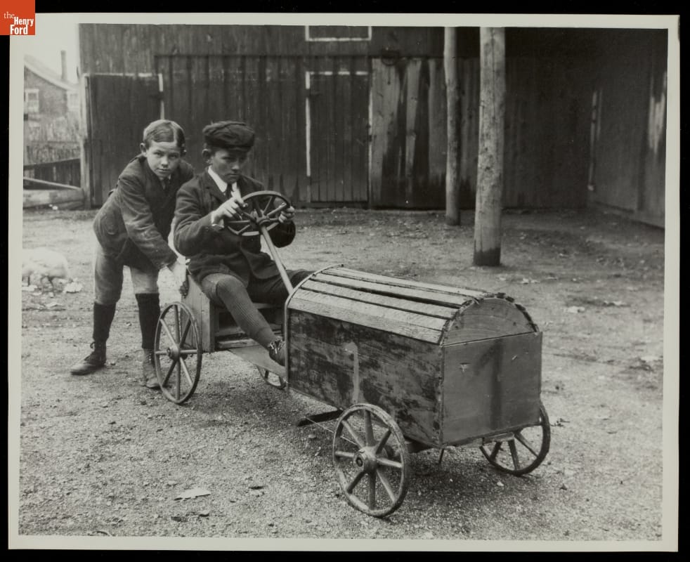 THF200897 / Boys Playing with Toy Race Car, circa 1910