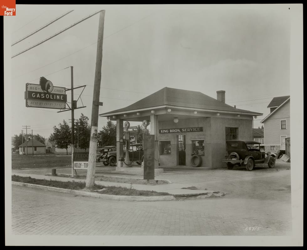 At first, motorists had to buy gasoline at grocery or hardware stores. But by the 1920s, service and repair stations had become a fixture of American roadsides and cityscapes. This roadside station offered drivers gasoline and an array of automotive services. It was also one of the few places they could stop to use the restroom.