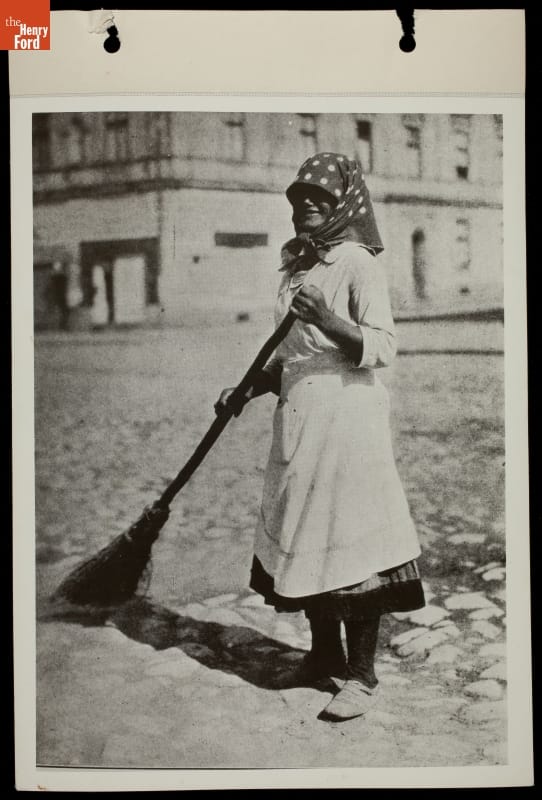 Woman Sweeping Stone-Paved Street, 1934