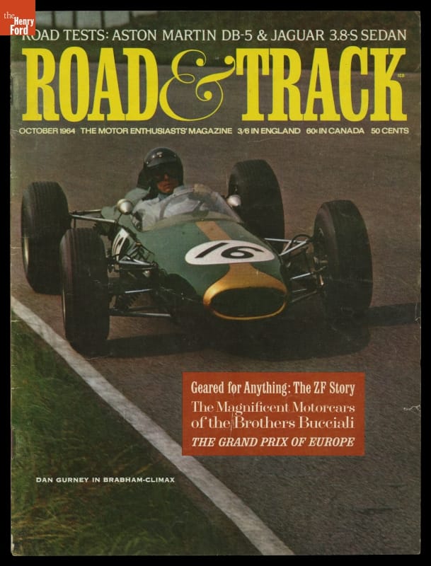 ROAD TESTS: ASTON MARTIN DB-5 & JAGUAR 3.8-S SEDAN / ROAD & TRACK / ... / DAN GURNEY IN BRABHAM-CLIMAX
