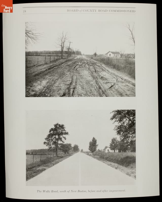 "Waltz Road, South of New Boston, Before and After Improvement," Wayne County, Michigan, 1924-1925