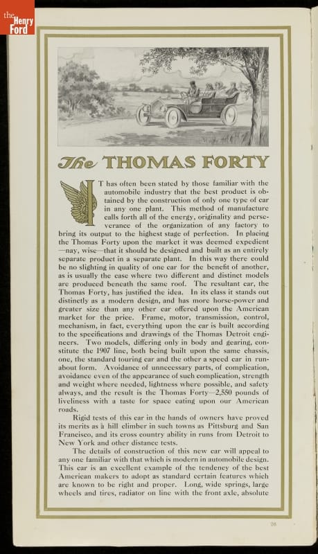 1907 Thomas Flyer Catalog, "Speed, Strength, Silence"